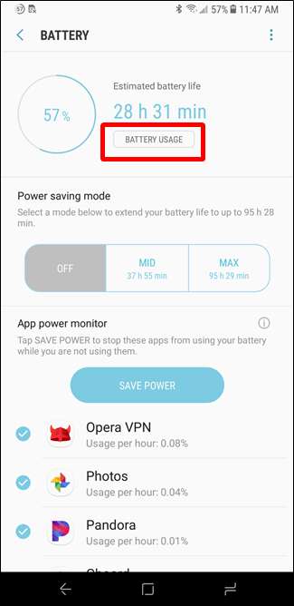 سیمسنگ آلات پر ، آپ کو اس فہرست کو دیکھنے کے ل battery بیٹری مینو میں "بیٹری کے استعمال" کے بٹن کو ٹیپ کرنے کی ضرورت ہوگی۔