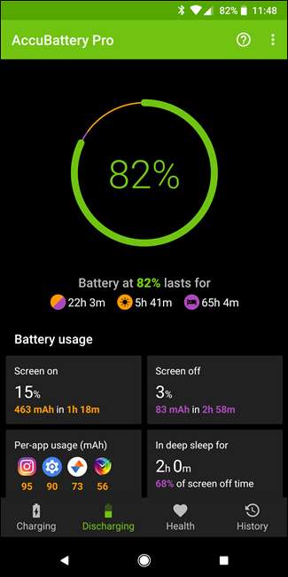اس نے کہا ، ابھی بھی کچھ طریقے باقی ہیں جو آپ حاصل کرسکتے ہیں لوڈ ، اتارنا Android پر زیادہ معنی والے بیٹری کے اعدادوشمار . آپ کی بیٹری (جڑ کے بغیر) کے بارے میں تفصیلی معلومات حاصل کرنے کے لئے ہماری ترجیح ایپ ہے ایکیو بیٹری ، جو نہ صرف زیادہ بصیرت فراہم کرتا ہے کہ کون سے ایپس سب سے زیادہ بیٹری استعمال کررہے ہیں ، بلکہ آپ کی ایک تفصیلی نگاہ بھی فراہم کرتے ہیں بیٹری صحت . یہ ان ایپس میں سے ایک ہے جو وقت گزرنے کے ساتھ ساتھ بہتر اور مفید ہوتا جاتا ہے ، لہذا آپ اسے جتنا زیادہ استعمال کریں گے اتنا ہی آپ اسے پسند کریں گے۔