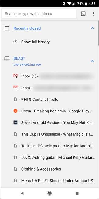 اگر آپ اپنے فون پر ایکسٹینشن اور ایپ کے ذریعہ ایسا کرنے کے خیال میں نہیں ہیں تو ، آپ ہمیشہ Chrome کے آبائی ٹیب موافقت پذیری کا استعمال کرسکتے ہیں۔ اس طرح پریشانی میں اس سے کچھ زیادہ ہی مشکل ہے ، لیکن آپ کو کسی اور چیز کی ضرورت نہیں ہے - صرف آپ کے کمپیوٹر اور فون پر کروم براؤزر۔