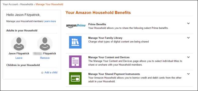 نوٹ: اگر آپ پرانی ایمیزون پرائم شیئرنگ استعمال کرتے ہیں (صرف امیزون ہاؤسنگ سے پہلے کا شپنگ آپشن) آپ کا شریک حیات پہلے ہی آپ کے ایمیزون ہاؤس میں دوسرا بالغ ہوسکتا ہے اور آپ ان کو شامل کرنے سے قاصر ہوں گے۔ "ایک بالغ کو شامل کریں" پر کلک کرنے کے بجائے "ایک بالغ کو شامل کریں" کے بٹن کے نیچے "اپنے ایمیزون گھریلو کا نظم کریں" لنک پر کلک کریں۔ یہ آپ کو مینجمنٹ پینل میں سیدھے پھینک دے گا جو باقی سب اس ٹیوٹوریل میں چند قدم نہیں دیکھ پائیں گے۔