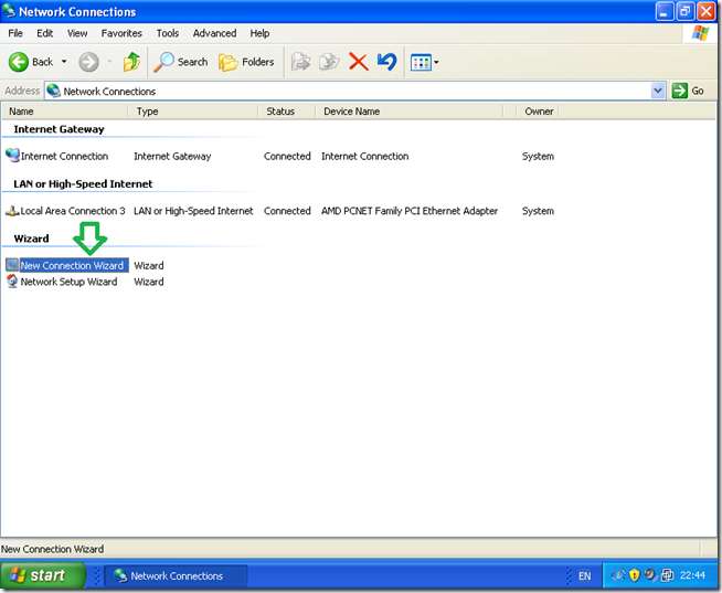 "نیا کنکشن وزرڈ" پر ڈبل کلک کریں۔