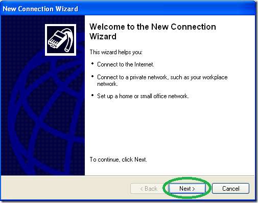 "نیا کنکشن وزرڈ" میں خوش آمدید سکرین پر کلک کریں "اگلا"۔