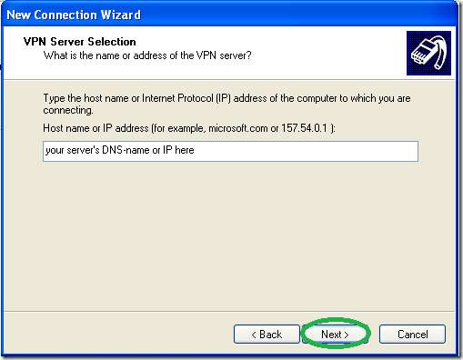 انٹرنیٹ سے دکھائے گئے اپنے VPN سرورز DNS-name یا IP ایڈریس کے نام ٹائپ کریں۔
