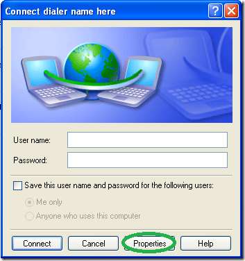 اب مشکل حصہ آتا ہے ، یہ آپ کے لئے انتہائی ضروری ہے نہیں ابھی متصل ہونے کی کوشش کریں اور ڈائلر کی "پراپرٹیز" میں جائیں۔