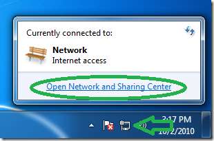 سسٹم ٹرے میں نیٹ ورک کے آئیکون پر کلک کریں اور پھر "اوپن نیٹ ورک اور شیئرنگ سینٹر"