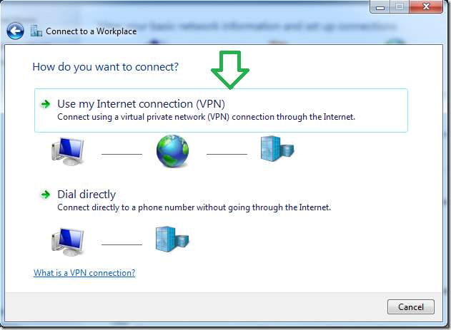"میرے انٹرنیٹ کنیکشن کا استعمال کریں (VPN)" کے پہلے آپشن پر کلک کریں۔
