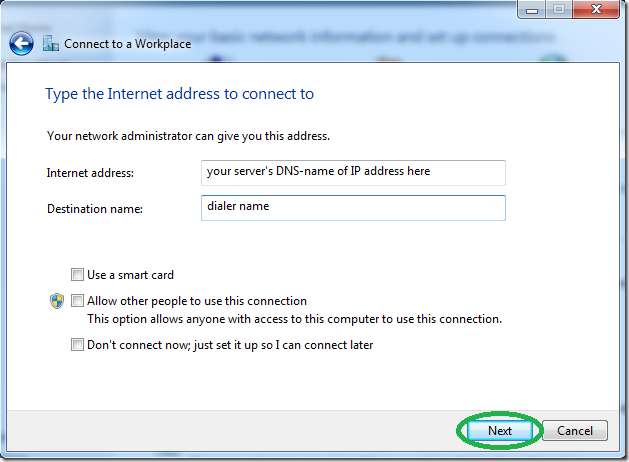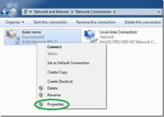 Win7 (تقسیم سرنگ) پر پی پی پی پی وی پی این ڈائلر سیٹ اپ