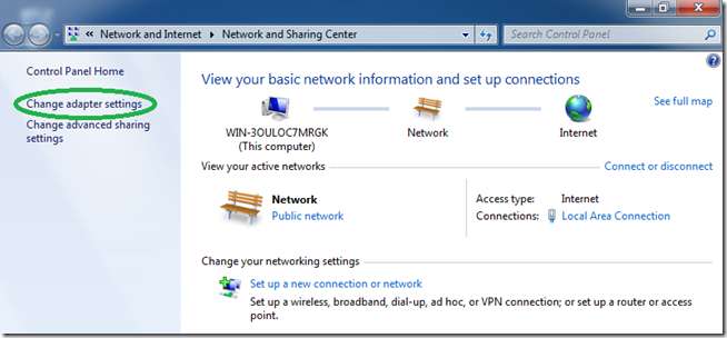 "نیٹ ورک سینٹر" میں واپس ، "اڈیپٹر کی ترتیبات کو تبدیل کریں" پر کلک کریں۔
