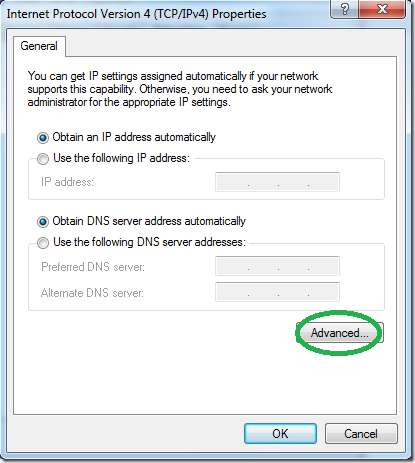 اگلی ونڈو پر کسی بھی چیز کو تبدیل کیے بغیر "ایڈوانس" میں جائیں۔