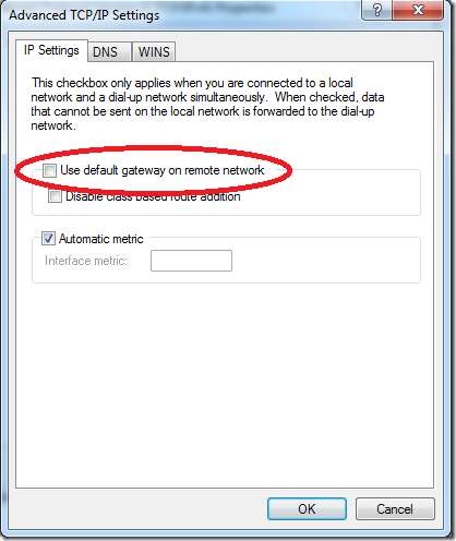 اگلی ونڈو پر ، چیک نہ کریں "ریموٹ نیٹ ورک پر ڈیفالٹ گیٹ وے استعمال کریں" کا آپشن۔