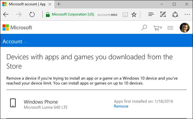 اگر آپ ایپس اور گیمس انسٹال کرنے کے ل device آلے کی حد کو پہنچ چکے ہیں تو ، فہرست میں سے ایک یا زیادہ آلات کو یہاں سے ہٹائیں۔ آپ اس فہرست سے ہٹانے والے آلات پر ونڈوز اسٹور سے ایپس اور گیمس انسٹال نہیں کرسکیں گے – جب تک آپ انہیں دوبارہ فہرست میں شامل نہ کریں – لہذا صرف وہی ڈیوائسز کو ہٹائیں جنہیں آپ استعمال نہیں کرتے ہیں۔