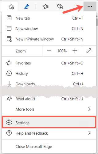 حد یہ آپشن کو فعال کرنے کے لئے، کھلا مائیکروسافٹ کنارہ، سب سے اوپر دائیں جانب تین نقطے کلک کریں اور منتخب کریں "ترتیبات".