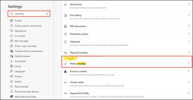 تلاش کرنے کے لئے، بائیں سب سے اوپر باکس لفظ "Autoplay کی" تلاش کی ترتیبات میں ٹائپ کریں. آپ کو منتخب کرنے کے لئے اس کے بعد آپ میڈیا Autoplay آپشن خاص بات دیکھنا چاہیئے.