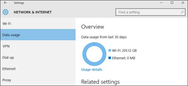 کرنا پچھلے 30 دنوں میں اپنے ڈیٹا کا استعمال چیک کریں ، اپنے اسٹارٹ مینو سے ترتیبات ایپ کو کھولیں اور نیٹ ورک اور انٹرنیٹ> ڈیٹا استعمال میں جائیں۔ آپ کو ایک گراف نظر آئے گا جس میں دکھایا گیا ہے کہ آپ کے ونڈوز 10 پی سی نے وائی فائی اور وائرڈ ایتھرنیٹ کے مابین پچھلے 30 دنوں میں کتنا ڈیٹا استعمال کیا ہے۔