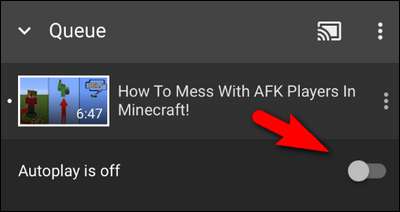 یہاں ، کسی ایسی جگہ پر واقع جب آپ اس وقت تک نوٹس نہیں لیں گے جب تک کہ آپ فعال طور پر آئٹمز کی قطار میں نہیں لیتے ہیں ، یہ Chromecast اسٹریم کیلئے آٹو پلے ٹوگل ہے۔ ٹوگل کریں "آٹوپلے" آف کرنے کے لئے۔