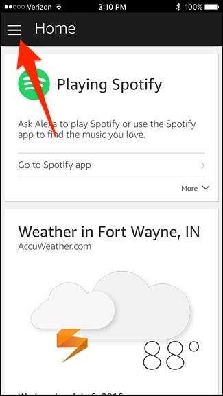شروع کرنے کے لئے ، اپنے اسمارٹ فون پر الیکسا ایپ کھول کر اور اسکرین کے اوپری بائیں کونے میں مینو کے بٹن پر ٹیپ کرکے شروع کریں۔