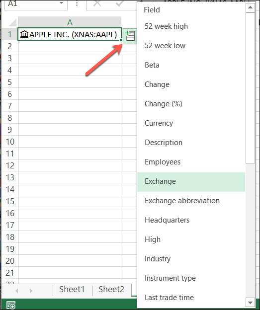 آپ کو آپ کے ابتدائی اعداد و شمار کے پر مشتمل ہے اس کے سیل سے دور پر کلک کریں، تو صرف اسے دوبارہ منتخب کریں، اور پھر کلک چھوٹے ڈالیں ڈیٹا کا آئکن کرنے کے لئے اگلے ظاہر ہوتا ہے کہ. تمام اسٹاک مارکیٹ تفصیلات آپ ممکنہ طور پر دکھایا جائے گا کی ضرورت سکتا ہے پر مشتمل ایک طویل، سکرال فہرست.