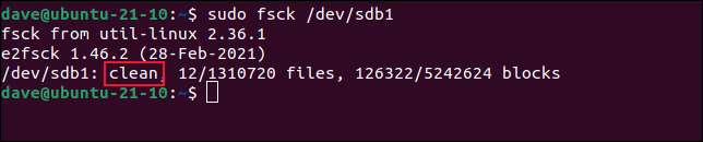 یہ فائل کا نظام صاف ہونے کے طور پر اطلاع دی گئی ہے. اس کا مطلب یہ ہے کہ فائل کا نظام رپورٹنگ ہے کہ اس کی کوئی غلطی یا مسائل نہیں ہیں. ایک گہری فائل کے نظام کی جانچ خود کار طریقے سے منعقد نہیں کی جاتی ہے. ہم واپسی کے کوڈ کو بھی دیکھ سکتے ہیں