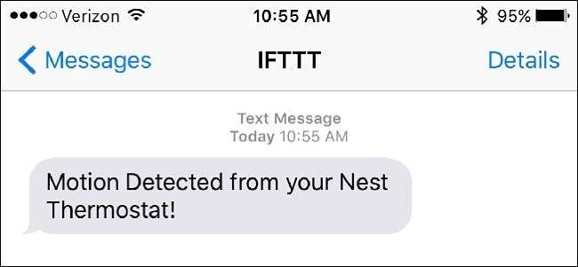 جب بھی آپ کا گھریلو ترموسٹیٹ تحریک کا پتہ لگاتا ہے اور خود کار طریقے سے خود کو "ہوم" میں تبدیل کرتا ہے ، آپ کو اس کے بارے میں ایک متن موصول ہوگا ، جب آپ گھر سے دور ہوجاتے ہیں تو آپ اپنے گھر میں کسی ممکنہ چوری کے بارے میں معلومات حاصل کرنے کا ایک عمدہ طریقہ بناتے ہیں۔
