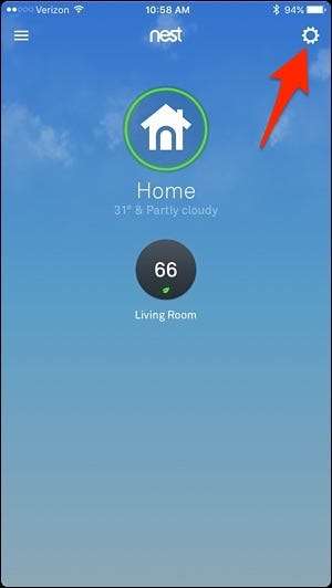 ہوم / ایو اسسٹ کو فعال کرنے کے ل your ، اپنے فون پر گھوںسلا ایپ کھولیں اور اوپر دائیں کونے میں گیئر آئیکن پر ٹیپ کریں۔