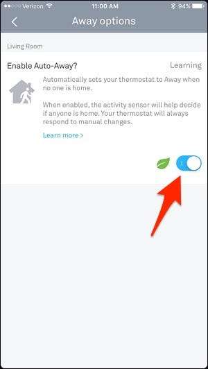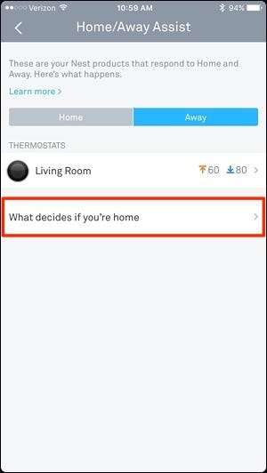 یہ خصوصیت آپ کے گھوںسلا ترموسٹیٹ کو خود بخود ہوم یا دور کے موڈ میں ڈال دے گی ، اس تحریک پر منحصر ہے جس کا اسے احساس ہے یا سمجھ میں نہیں ہے۔ آپ "گھریلو" بٹن پر ٹیپ کرکے گھوںسلا ایپ کی ہوم اسکرین پر موجود طریقوں کے مابین دستی طور پر بھی تبدیل ہو سکتے ہیں۔