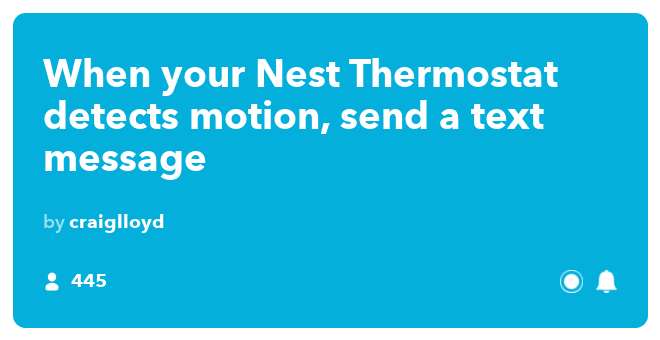تاہم ، آپ اس موشن سینسر کو صرف اس سے زیادہ کے لئے استعمال کرسکتے ہیں ، ایک خدمت کی بدولت جس کا نام ہے IFTTT (جس کا مطلب ہے "اگر یہ پھر ہے تو")۔ IFTTT صارفین کو ہر قسم کی مصنوعات اور خدمات کو ایک ساتھ مربوط کرنے کی اجازت دینے کے لئے "ترکیبیں" کا استعمال کرتا ہے جس سے آپ عام طور پر رابطہ قائم کرنے کے قابل نہیں ہوجاتے ہیں ، جیسے کہ ہر نئی فیس بک تصویر جس میں آپ کو ٹیگ کیا ہوا ہے وہ خود بخود آپ کے ڈراپ باکس میں اپ لوڈ ہوجاتا ہے۔ جب آپ کے گھوںسلا تھرمسٹیٹ کی تحریک کا پتہ لگاتا ہے تو ہم آپ کو اپنے نوسٹس کے ساتھ IFTTT استعمال کریں گے۔