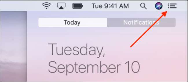 نوٹیفیکیشن سینٹر آپ کے میک پر مینو بار کا حصہ ہے. اگر آپ MacOS 10.15 Catalina یا پرانے چل رہے ہیں تو، آپ نوٹیفکیشن سینٹر کھولنے کے لئے مینو بار کے دائیں کنارے سے نوٹیفکیشن سینٹر آئیکن پر کلک کر سکتے ہیں.