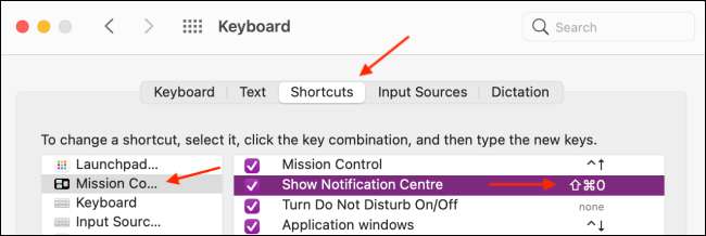 یہاں، "شارٹ کٹس" ٹیب پر جائیں. سائڈبار سے، "مشن کنٹرول" کا اختیار منتخب کریں.