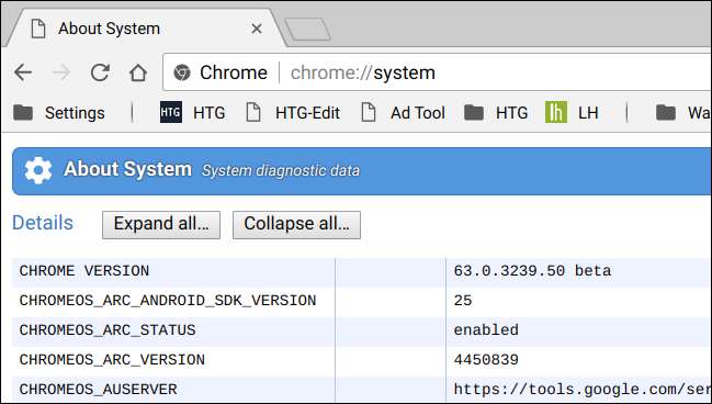 اس انٹرفیس کو تلاش کرنے کے ل Chrome ، کروم کے ایڈریس بار میں "chrome: // system" ٹائپ کریں اور انٹر دبائیں۔ (آپ یہ صفحہ ونڈوز ، میک یا لینکس پر بھی کھول سکتے ہیں۔ لیکن کروم سسٹم کی اتنی معلومات کے قریب کہیں بھی نہیں دکھائے گا۔)