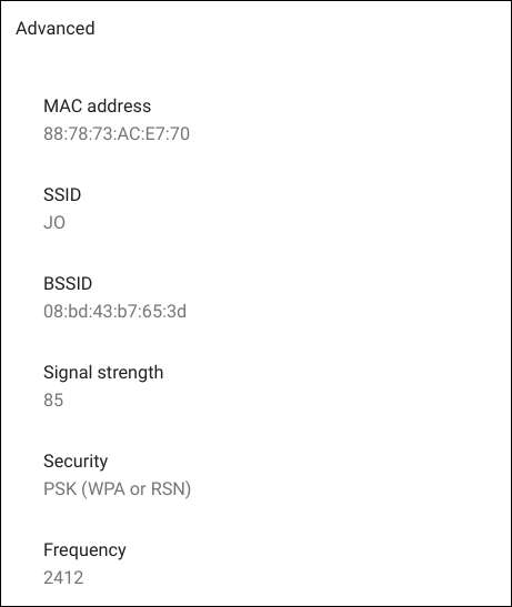 اپنے میک ایڈریس ، ایس ایس آئی ڈی ، اور سگنل کی طاقت جیسے تفصیلات دیکھنے کے لئے "ایڈوانسڈ" سیکشن کو بڑھاو۔