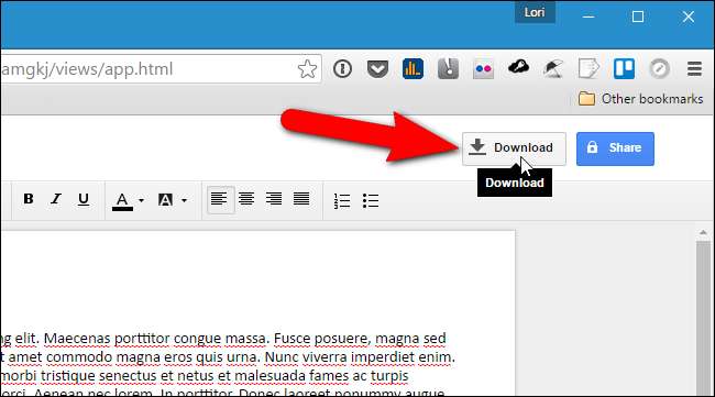 ورڈ فائل کو ایک نئے ٹیب میں کھولا گیا ہے اور آپ اس دستاویز کو اسی طرح ایڈٹ کرسکتے ہیں جب آپ نے ورڈ فائل کو کروم ونڈو پر گھسیٹا تھا۔ آپ براؤزر ونڈو کے اوپری دائیں کونے میں "ڈاؤن لوڈ" بٹن کا استعمال کرکے فائل کو ورڈ فائل کی طرح "ڈاؤن لوڈ" بھی کرسکتے ہیں ، یا دوسروں کے ساتھ شیئر کریں "بانٹیں" بٹن کا استعمال کرتے ہوئے۔