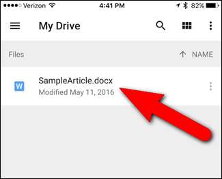 ہم آپ کو دکھائیں گے کہ آئی فون پر آپ کے گوگل ڈرائیو اکاؤنٹ میں ورڈ فائل کے ساتھ کیسے کام کرنا ہے ، لیکن یہ عمل دوسرے پلیٹ فارمز اور دیگر فائلوں کے ساتھ یکساں ہے۔ اپنے آلہ پر گوگل ڈرائیو ایپ کھولیں اور اس جگہ پر جائیں جہاں آپ ورڈ فائل کھولنا چاہتے ہیں۔ فائل پر ٹیپ کریں۔
