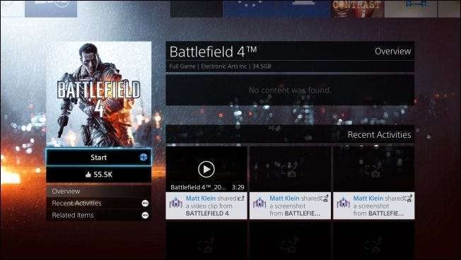 پلے اسٹیشن 4 کا انٹرفیس ، ارف ڈیش بورڈ