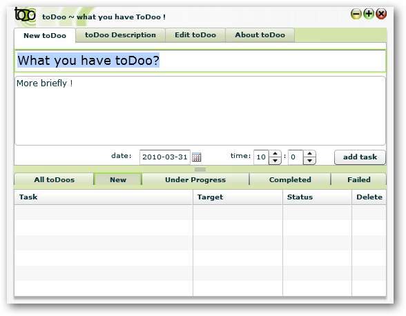ٹو ڈو ایک سیدھی سیدھی سی ایپ ہے جو آپ کو بغیر کسی آن لائن اکاؤنٹ کے اپنے کاموں کی فہرست اور متعلقہ تفصیلات سے باخبر رہنے دیتی ہے (خاص طور پر مددگار اگر آپ کسی خاص لمحے میں وائرلیس کنکشن کے بغیر ہیں)۔ اگر آپ اپنے ڈیسک ٹاپ پر چلنے والی فہرست کے بارے میں مزید کچھ تلاش کر رہے ہیں تو پھر ڈومی پر ہمارے مضمون کو دیکھیں یہاں .