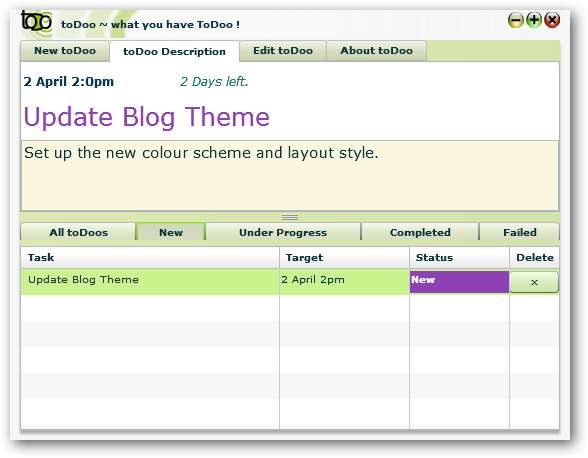 یہاں "ٹو ڈو تفصیل ٹیب" میں ہمارا پہلا نیا کام دیکھا گیا تھا۔