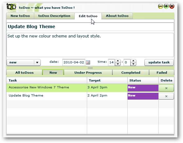 اگر آپ کو کسی خاص کام کے ل any کسی بھی تفصیلات میں ترمیم کرنے کی ضرورت ہے تو آپ "ڈو ٹیب میں ترمیم کریں" میں ایسا کرسکتے ہیں۔ یہ اچھی سی ایپ آسان اور استعمال میں آسان ہے۔