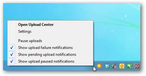 آپ دستاویزات اپ لوڈ کرتے وقت سسٹم ٹرے پر ظاہر ہونے والے آئیکن سے اپلوڈ سینٹر تک رسائی حاصل کرسکتے ہیں۔ اطلاعات کو کنٹرول کرنے ، اپ لوڈز کو روکنے اور اس کی ترتیبات تک رسائی حاصل کرنے کے لئے آئکن پر دائیں کلک کریں۔