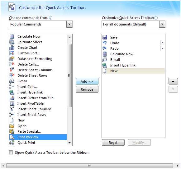 آفس 2007 میں نیا ربن عادت ڈالنے میں کچھ وقت لگ سکتا ہے ، لہذا فوری رسائی ٹول بار آپ کے سب سے زیادہ استعمال ہونے والی کمانڈوں کو ایک ٹول بار میں ڈالنے کا ایک بہترین طریقہ ہے جب آپ ربن کے عادی ہو رہے ہو۔