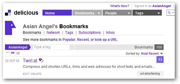 ہمارے مزیدار اکاؤنٹ کو چیک کرنا ہمارے نئے بُک مارک کو فہرست کے اوپری حصے میں اچھی طرح بیٹھے ہوئے دکھاتا ہے۔