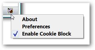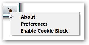 ایک بار جب آپ ایکسٹینشن انسٹال کردیتے ہیں تو کوکی کلیر تک رسائی کے دو راستے ہوتے ہیں۔ سب سے پہلے "اسٹیٹس بار آئکن" کے ذریعے ہوتا ہے… یہاں آپ چھوٹی "رائٹ کلک مینو" دیکھ سکتے ہیں…