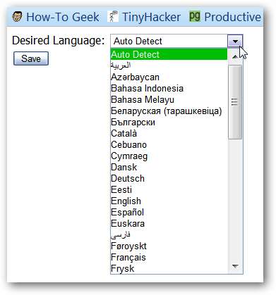اختیارات میں وہ زبان منتخب کریں جس میں آپ ویکیپیڈیا ڈسپلے کرنا چاہتے ہیں (یا اگر ترجیح دی تو "آٹو کا پتہ لگانے" کا استعمال کریں)۔