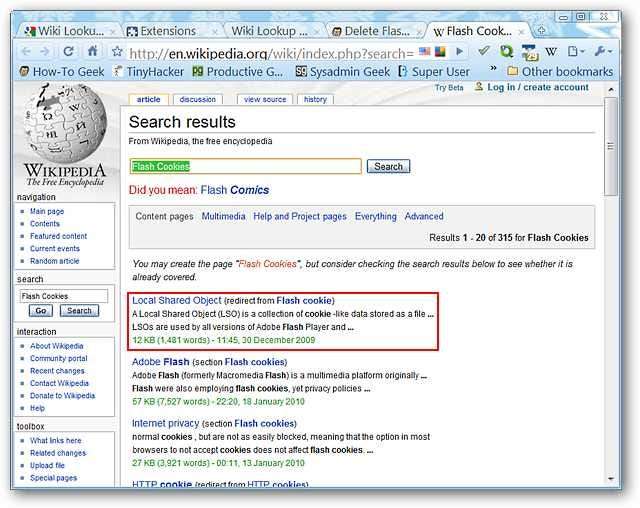 اپنی مثال کے طور پر ہم نے "فلیش کوکیز" تلاش کرنے کا فیصلہ کیا ہے۔ ڈراپ ڈاؤن ونڈو ٹیکسٹ فیلڈ میں اس اصطلاح کو نمایاں کریں اور کاپی / پیسٹ (یا ٹائپ کریں) جس کی تلاش آپ چاہتے ہیں۔ آپ اپنی تلاش شروع کرنے کے لئے "انٹر" کو دبائیں یا "میگنفائنگ گلاس آئیکن" پر کلک کرسکتے ہیں۔