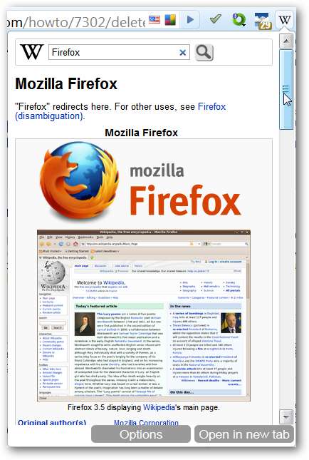 اگر آپ براؤز کرتے وقت دن بھر ویکیپیڈیا تک رسائی حاصل کرتے ہیں تو پھر وکی لُک اپ توسیع آپ کے براؤزر میں بہت عمدہ اضافہ کر دے گی۔