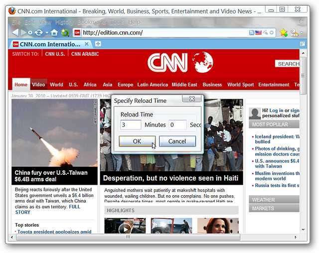 ہم نے اپنے ٹیسٹ کے لئے CNN.com انٹرنیشنل ویب سائٹ ملاحظہ کرنے کا فیصلہ کیا ہے… صفحے کو تازہ دم کرنے کے لئے ہمارے پاس صرف ایک "دوبارہ لوڈ کا اختیار" دستیاب تھا… ویب صفحہ کو دستی طور پر دوبارہ لوڈ کیا جارہا ہے۔ اگر آپ کے پاس کوئی ایسی ویب سائٹ ہے جس پر آپ دن بھر سیشن ٹائم آؤٹ یا اپنی پسندیدہ ویب پیج کی تازہ کاریوں سے بچنا چاہتے ہیں تو آپ کو غالبا likely بہت مایوسی کا سامنا کرنا پڑتا ہے۔