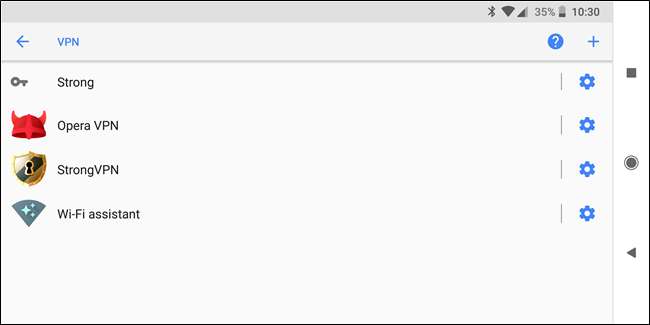 کچھ وی پی این کے اپنے اسٹینڈلیون ایپس ہوسکتے ہیں ، لیکن اگر آپ ایسا نہیں کرتے ہیں تو ، آپ ترتیبات کے مینو میں جاسکتے ہیں ، وائرلیس اور نیٹ ورکس کے تحت مزید ٹیپ کرسکتے ہیں اور وی پی این پر ٹیپ کرسکتے ہیں۔ آپ متعدد VPN پروفائلز کو شامل اور ترمیم کرسکیں گے۔ Oreo پر ، آپ کو نیٹ ورک اور انٹرنیٹ مینو میں VPN آپشن ملے گا۔