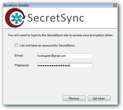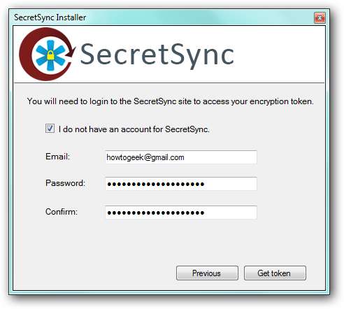 پہلے کمپیوٹر پر آپ کو نیا سیکریٹ سیئنک اکاؤنٹ بنانے کی ضرورت ہوگی۔ اس کی ضرورت ہے کیونکہ سیکریٹ سائینک آپ کی انکرپشن کیز کو اسٹور کرے گا جبکہ ڈراپ باکس آپ کی فائلوں کو اسٹور کرے گا۔ یہ علیحدگی آپ کی چابیاں اور آپ کی فائلیں دونوں کو محفوظ رہنے کی اجازت دیتی ہے۔ پہلے کمپیوٹر اور بعد میں تنصیبات پر اپنا اکاؤنٹ بنائیں جس سے آپ اپنی اسناد فراہم کریں گے۔