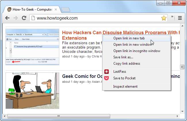 اس سے آپ متعدد ویب صفحات کھول سکتے ہیں جن میں آپ کی دلچسپی ہے۔ مثال کے طور پر ، اگر آپ ہاؤ ٹو گیک پر متعدد مضامین پڑھنا چاہتے ہیں تو آپ کو ہر مضمون پر کلک کرنے کی ضرورت نہیں ہے ، مضمون پڑھنا ہوگا ، پچھلے بٹن کو دبائیں۔ ، پھر اگلے مضمون کو ڈھونڈیں - آپ ہر نئے مضمون کو کھول سکتے ہیں جس میں آپ دلچسپی رکھتے ہیں ایک نئے ٹیب میں۔ مضامین پس منظر میں لوڈ ہوں گے ، لہذا جب آپ ٹیب پر سوئچ کریں گے ، تو یہ بوجھ کے اوقات کے ساتھ پڑھنے کے لئے تیار ہوجائے گا۔