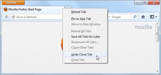 اگر آپ غلطی سے کبھی بھی کسی ٹیب کو بند کردیتے ہیں تو ، آپ اپنے ٹیب بار پر دائیں کلک کر سکتے ہیں اور بند ٹیب کو دوبارہ کھولیں یا بند ٹیب کو کالعدم کریں کے اختیار کو استعمال کرسکتے ہیں۔ آپ کا براؤزر آپ کے آخری بار بند کردہ ٹیب کو دوبارہ کھول دے گا۔
