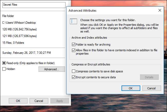 آپ اس کے لئے ہدایات "انکرپٹنگ فائل سسٹم کا استعمال کرتے ہوئے فائلوں کو خفیہ کرنا" سیکشن میں دیکھ سکتے ہیں یہ گائیڈ (اسے دیکھنے کے ل you آپ کو آخری حصے میں جانا پڑے گا)۔ آپ سبھی کو فائل یا فولڈر پر دائیں کلک کرنے ، پراپرٹیز کو منتخب کرنے ، ایڈوانسڈ پر جانے ، اور سیکیورٹی ڈیٹا چیک باکس میں خفیہ مواد کی جانچ پڑتال کرنے کی ضرورت ہے۔