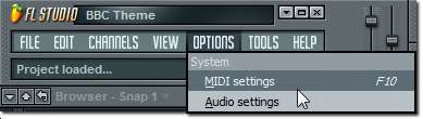 اس مضمون کی خاطر میں نے اپنے کنٹرولر پر اپنے 1،2،3 ، اور 4 بٹن تفویض کردیئے "نوٹ آن" احکامات اب جب گیم پیڈ کنٹرولر تشکیل شدہ ہے ، تو فروٹ لپس کو کھولیں اور آپشن MIDI سیٹنگ (F10) پر جائیں۔